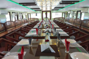 Food brings people together, and on a houseboat, it becomes a celebration. A dedicated dining space, often on the open deck, enhances the meal experience. You’ll enjoy multi-cuisine dishes as well as authentic Kerala delicacies like Karimeen Pollichathu, spicy prawn roast, vegetarian Sadhya served on banana leaves, and more.